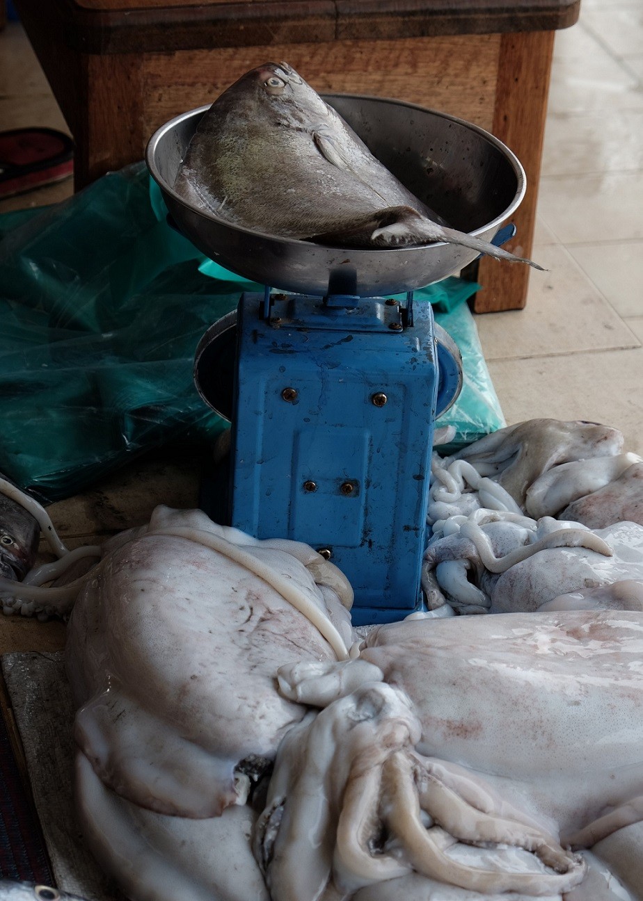 Der Tross setzt sich in Bewegung und fährt nochmal nach Muscat hinein. Wir machen einen Rundgang über den lokalen Fischmarkt. Reges Handeln, fangfrische Fische in allen Größen und vielen Farben begeistern unsere Sinne.