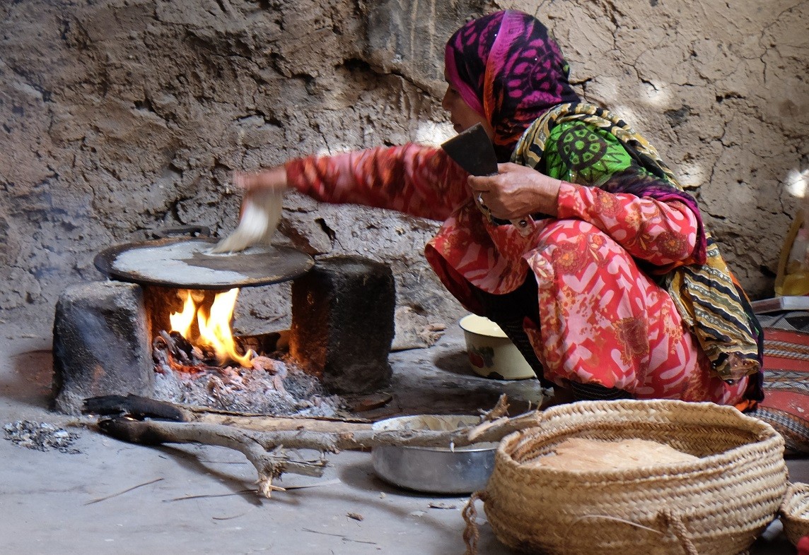 Nach einem kurzen Picknick geht es dann wieder hinab über die Piste, später Straße und wir besuchen die Oase Al-Hamra und erfahren viel über den Dattelpalmenanbau und die Dattelgewinnung.